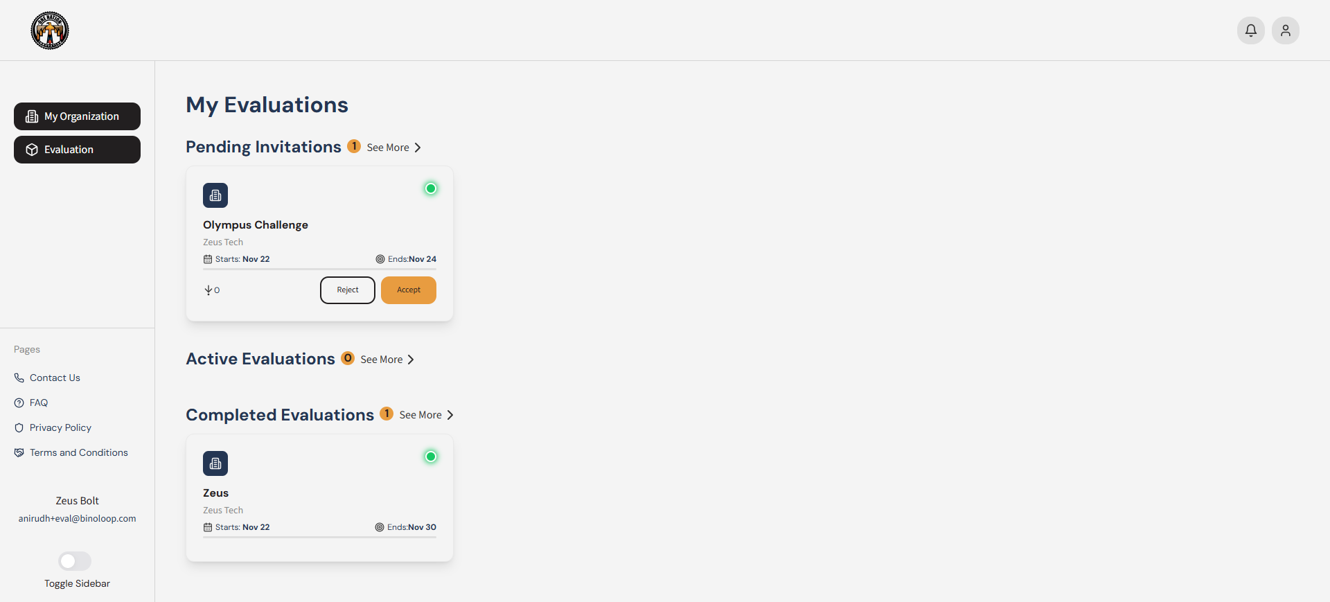 As an evaluator, you will receive an invitation to evaluate. You must accept or decline evaluation requests in order to proceed to the next step.